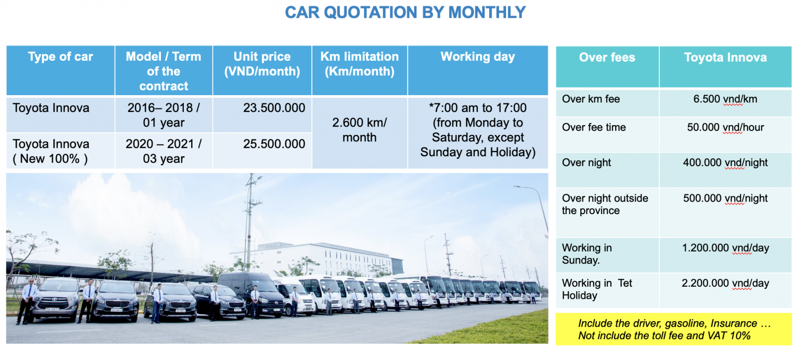 BÁO GIÁ DỊCH VỤ XE THUÊ XE 7 CHỖ INNOVA THEO THÁNG (tham khảo)