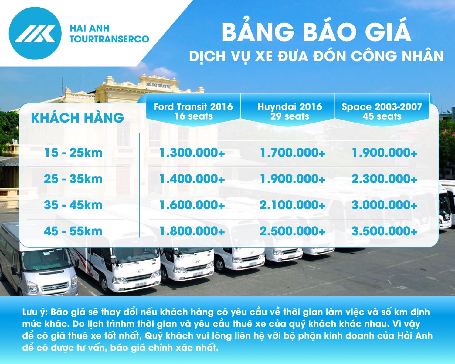 BẢNG BÁO GIÁ & QUY TRÌNH DỊCH VỤ THUÊ XE ĐƯA ĐÓN CÔNG NHÂN