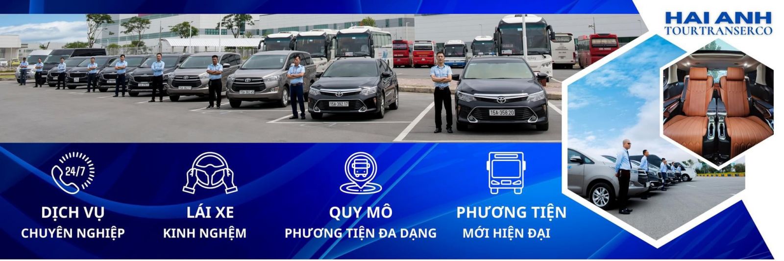Vận tải Hải Anh cam kết với dịch vụ chuyên nghiệp khác biệt cùng hơn 250 phương tiện xe mới từ 7 chỗ, xe VIP Solati vs Carnival, 16 chỗ và 29 chỗ đến 45 chỗ, 47 chỗ Universe 2023.. được đầy đủ trang thiết bị an toàn và giải trí sẽ phục vụ tốt các yêu cầu về du lịch cho doanh nghiệp và gia đình, cá nhân: